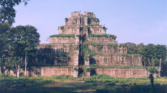 We visit the vast Prasat Thom, a seven-storey step pyramid, more Mayan than Khmer, with commanding views over the surrounding forest. Nearby is Prasat Krahom or Red Temple, named after the pinkish Banteay Srei-style stone from which it is built.